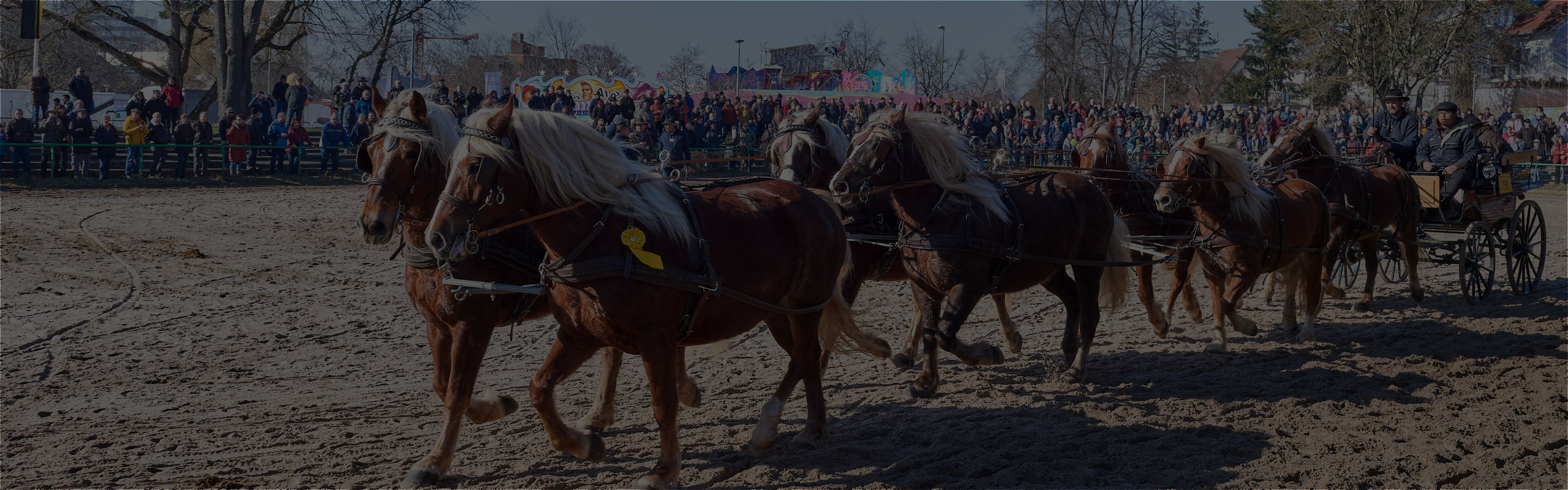 Neben zahlreichen Pferden nehmen auch einige Kutschen am Festumzug teil und fahren die Ehrengäste des Oberbürgermeisters an die Ehrentribüne.